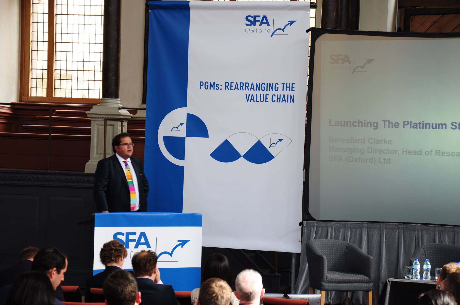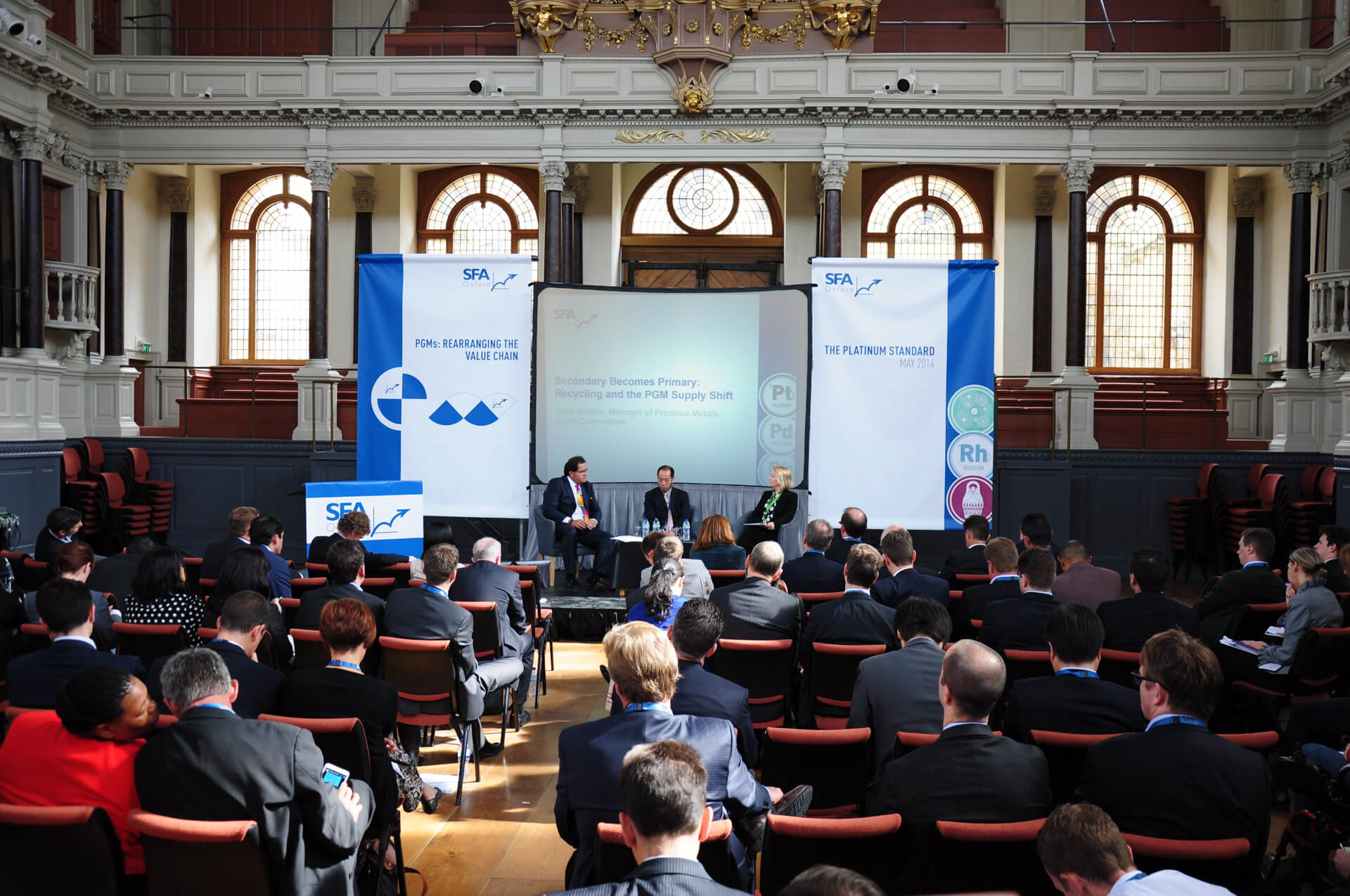In 2014, SFA (Oxford) was proud to celebrate five years of hosting the Oxford Platinum Lectures. On the eve of Platinum Week, SFA bought together, some of the world’s leading experts from across the PGM value chain to discuss the fundamental transformation through which the global sector is going with some fascinating presentations. From regional shifts in supply to new frontiers in exploration; from the birth of the proxy producer to the growth of the demand giant; all of this and more was discussed and debated with a panel of esteemed speakers. This is an effort to offer some kind of clarity in an otherwise opaque industry, where we are all working together for a sustainable industrial future, and a more cohesive industry built on a foundation of close partnerships within the rearranged value chain.