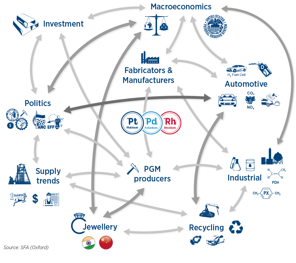 SFA has explored the purchasing dynamics between market participants, the complexity of the associated price web factors for platinum, palladium and rhodium, providing definitive answers to commercial questions.
